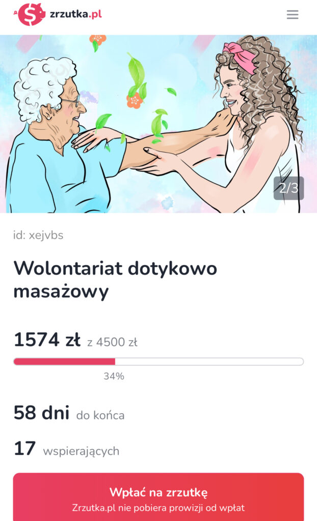 No to jeszcze zostawię link do zrzutki. Uzbierało się ciut mniej niż połowa! To się dzieje! Jutro ruszam, skoro świt do Jastrzębiej Góry. Jestem bardzo ciekawa, co przyniesie piątkowy wolontariat dotykowo masażowy w moim trzecim domu.
